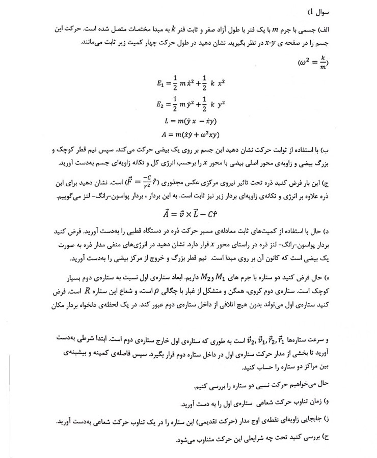 موضوع :   المپیاد فیزیک مکانیک فنر انرژی انرژی پتانسیل فنر تکانه زاویه ای نیروی مرکزی پایستگی تکانه زاویه ای بیضی