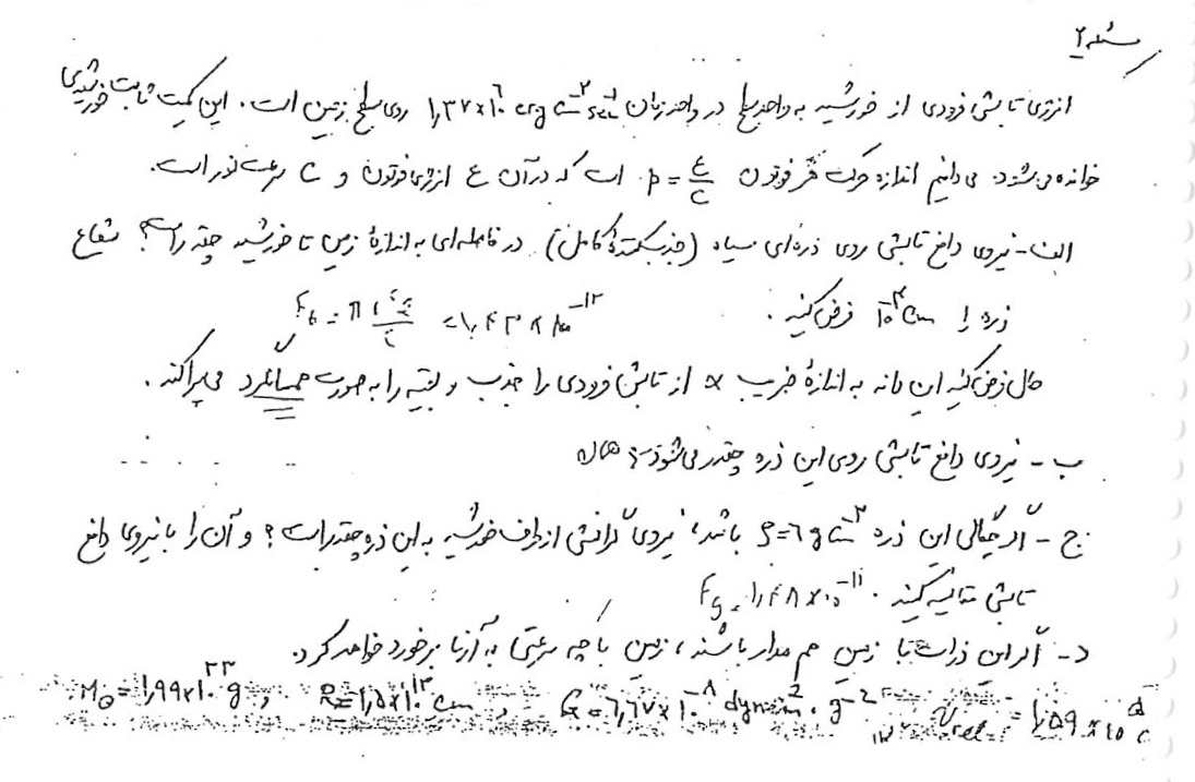 موضوع :   المپیاد فیزیک تابش خورشید الکترومغناطیس تابش الکترومغناطیسی توان تابشی فشار تابشی