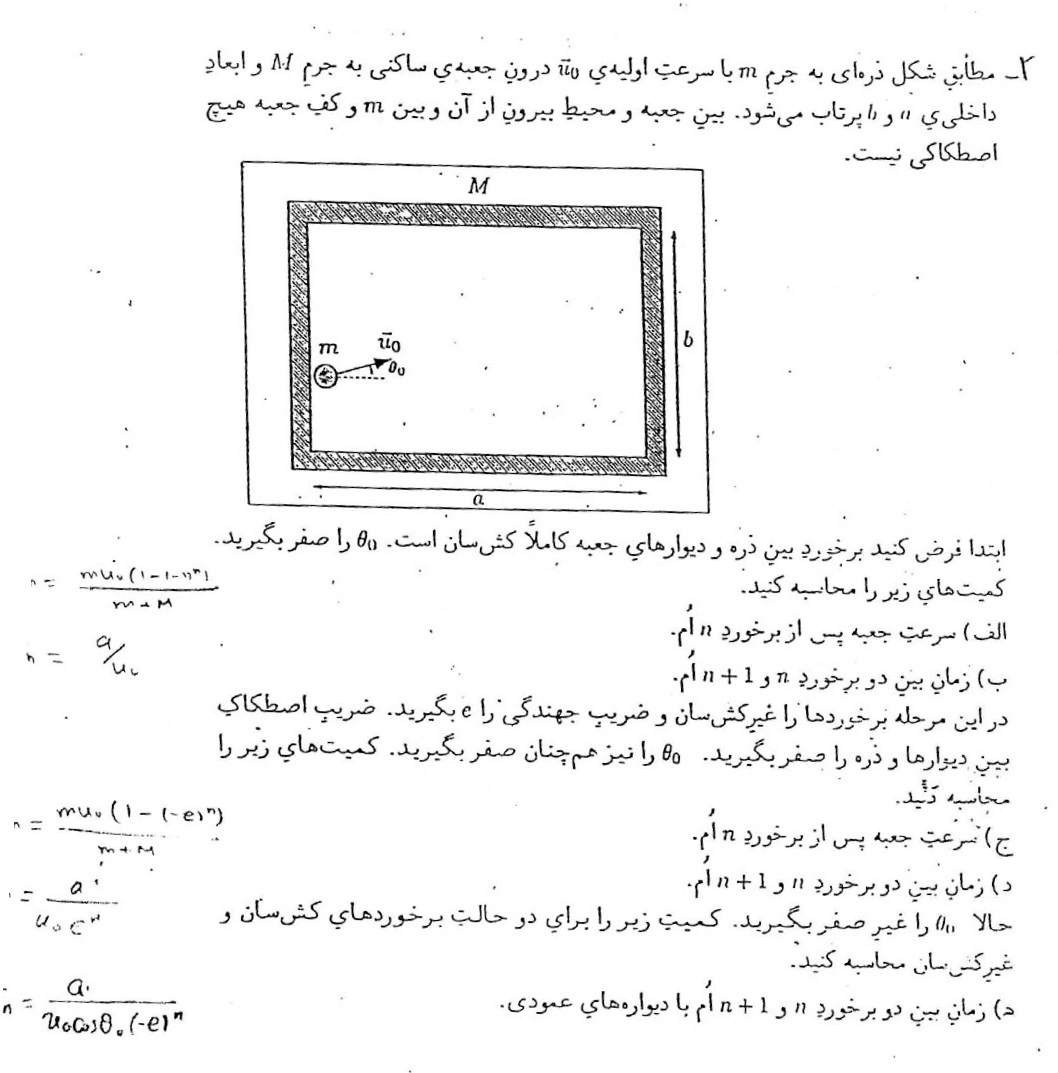 موضوع :   المپیاد فیزیک مکانیک برخورد برخورد کشسان برخورد ناکشسان تکانه پایستگی تکانه