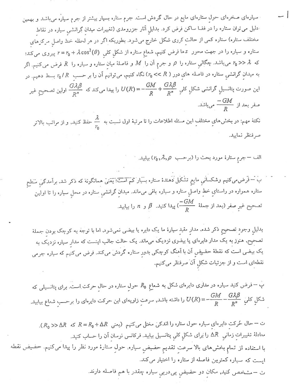 آزمون المپیاد فیزیک – دوره تیم – سال 87 – آزمون نهایی – سؤال 1