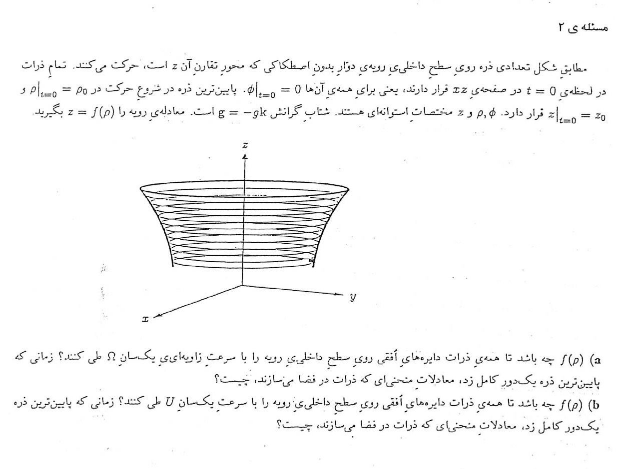 موضوع :   المپیاد فیزیک مکانیک سقوط آزاد حرکت دایره ای مقاطع مخروطی معادلات حرکت