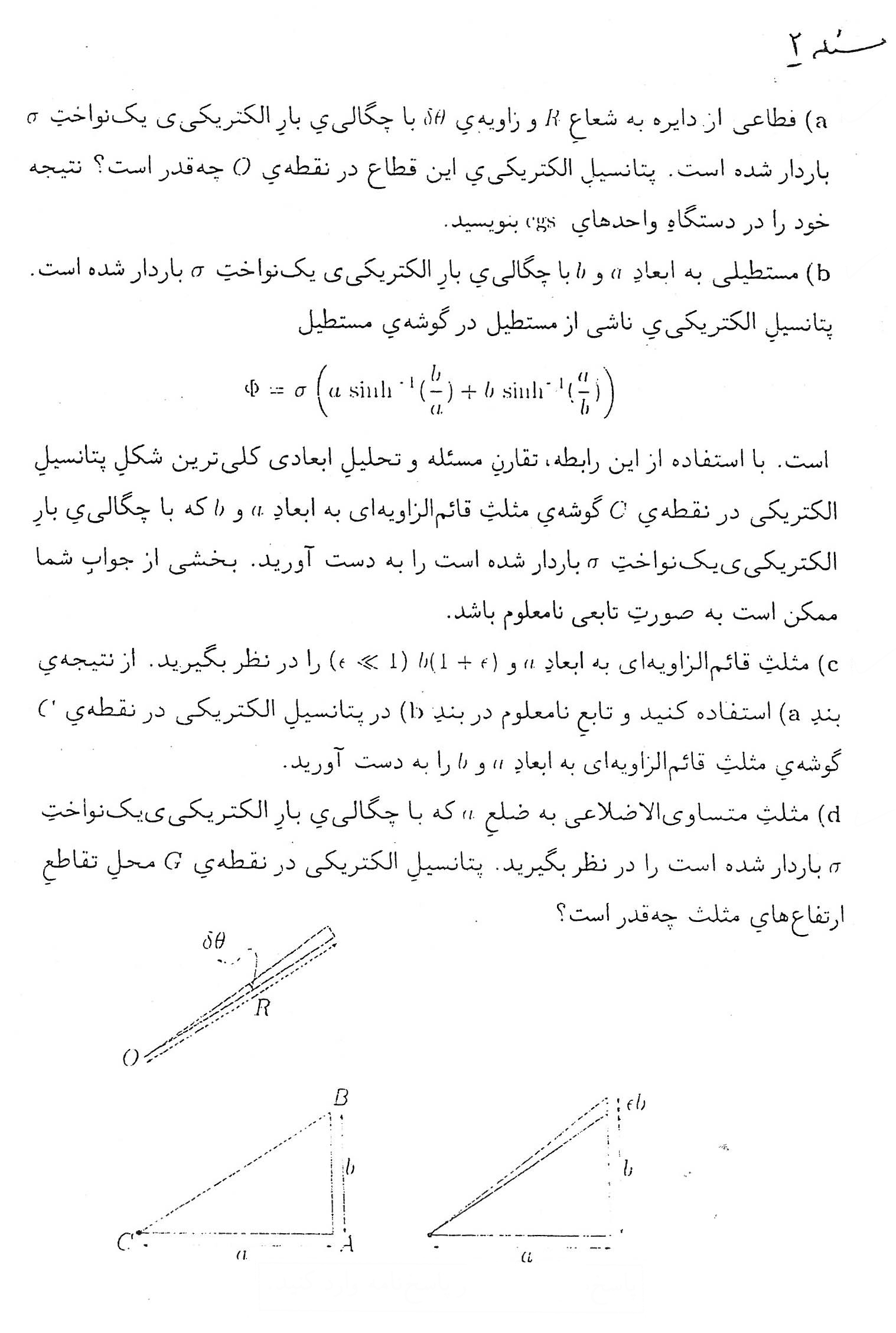موضوع :   المپیاد فیزیک الکترومغناطیس الکتروستاتیک پتانسیل الکتریکی توزیع بار پیوسته چگالی بار سطحی