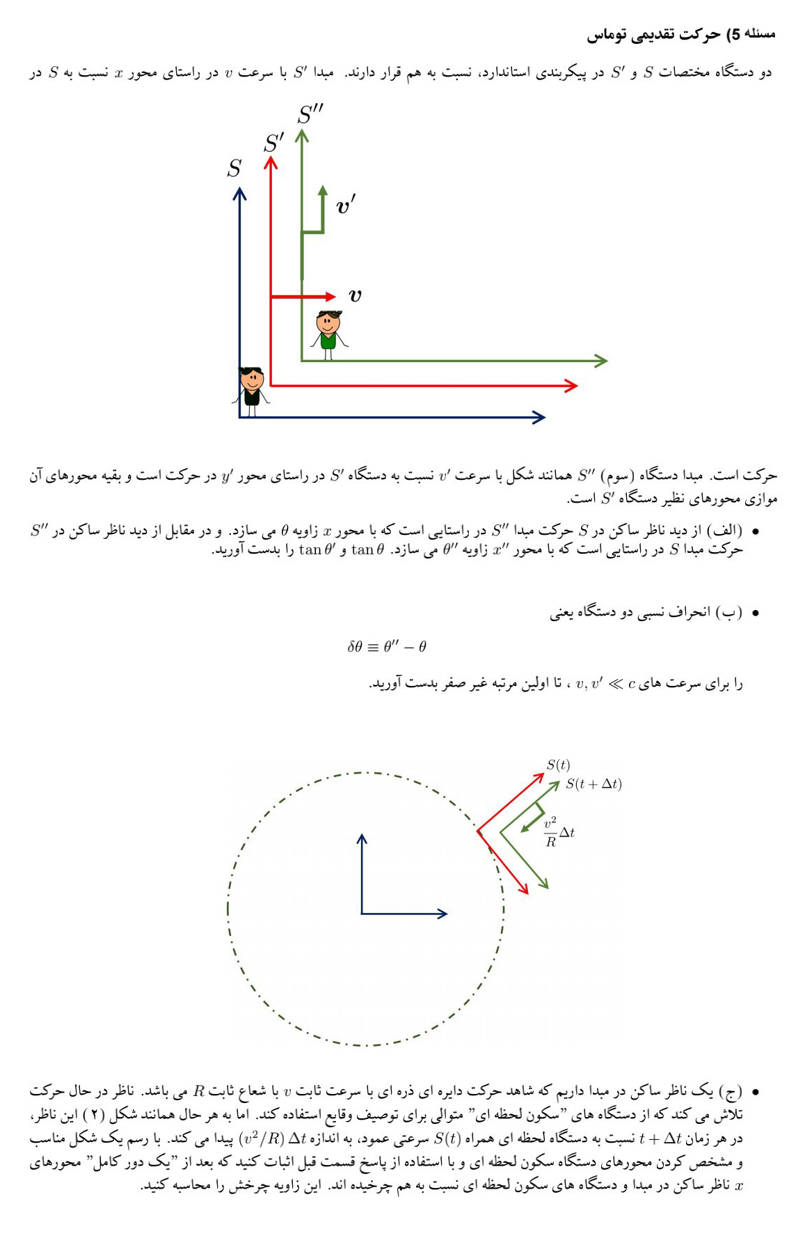 موضوع :   المپیاد فیزیک مکانیک دستگاه شتابدار حرکت دایره ای نسبیت خاص حرکت نسبی دستگاه نالخت دستگاه دوار سرعت نسبی