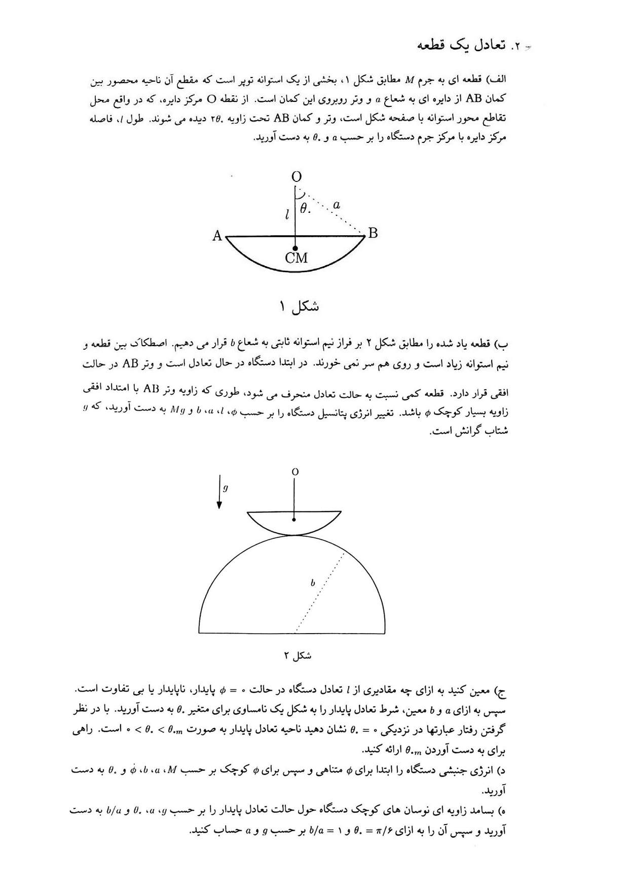 آزمون المپیاد فیزیک – دوره چهل – سال 1397 – آزمون نهایی اول – سؤال 2