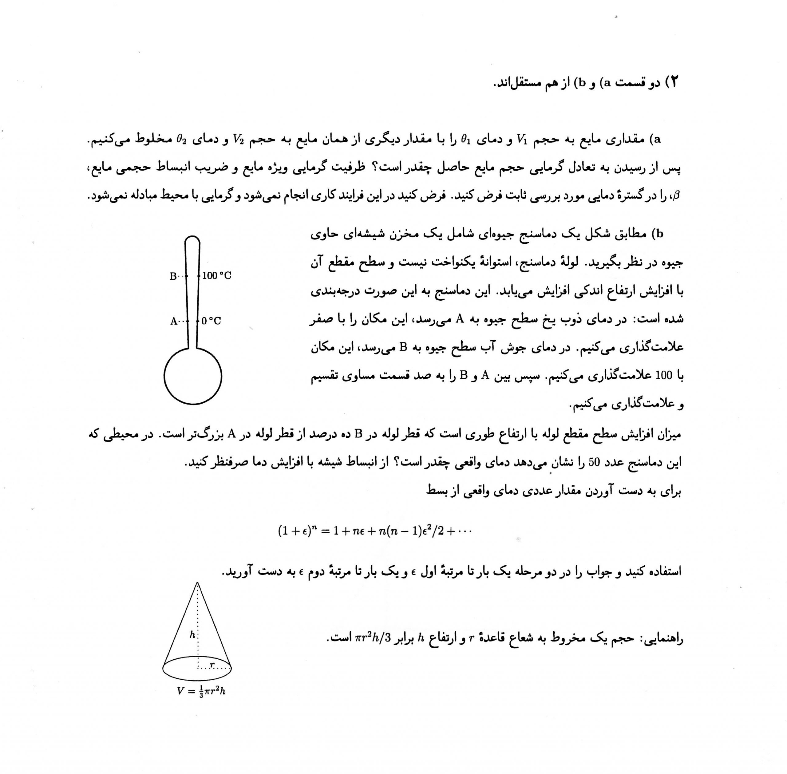 موضوع :   المپیاد فیزیک اندازه گیری و واحد ترمودینامیک انبساط گرمایی دماسنج قانون اول ترمودینامیک تقریب تغییر حجم ظرف ها در اثر انبساط گرمایی مدرج سازی دماسنج ریاضیات فرایند بی در رو چگالی حجم و مساحت ترکیب مواد انبساط حجمی ظرفیت گرمایی ویژه