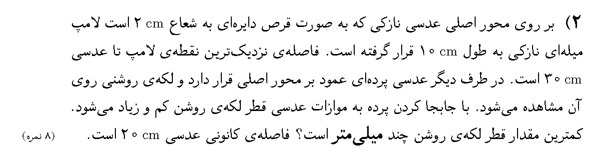 موضوع :   المپیاد فیزیک نورشناسی هندسی ابزارهای اپتیکی عدسی همگرا عدسی
