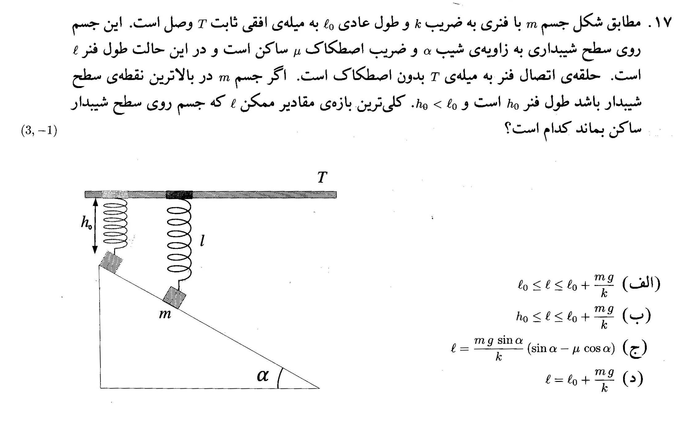 موضوع :   المپیاد فیزیک مکانیک فنر اصطکاک اصطکاک ایستایی سطح شیب دار انرژی