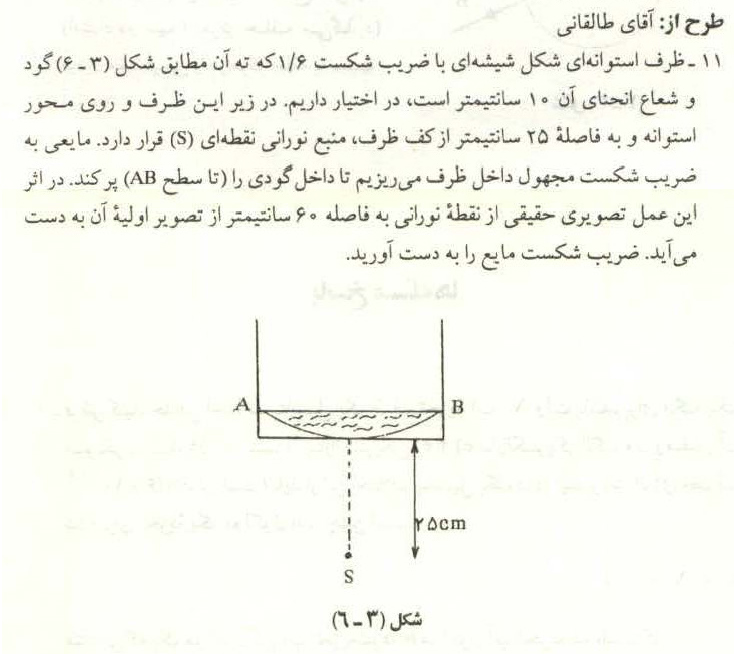موضوع :   المپیاد فیزیک نورشناسی هندسی شکست تصویر تصویر حقیقی