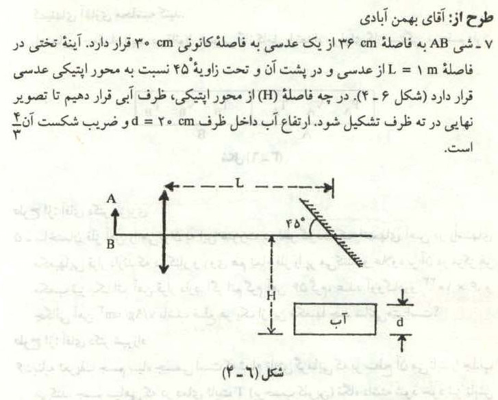 موضوع :   المپیاد فیزیک نورشناسی هندسی شکست ابزارهای اپتیکی آینه تخت عدسی همگرا تصویر عدسی