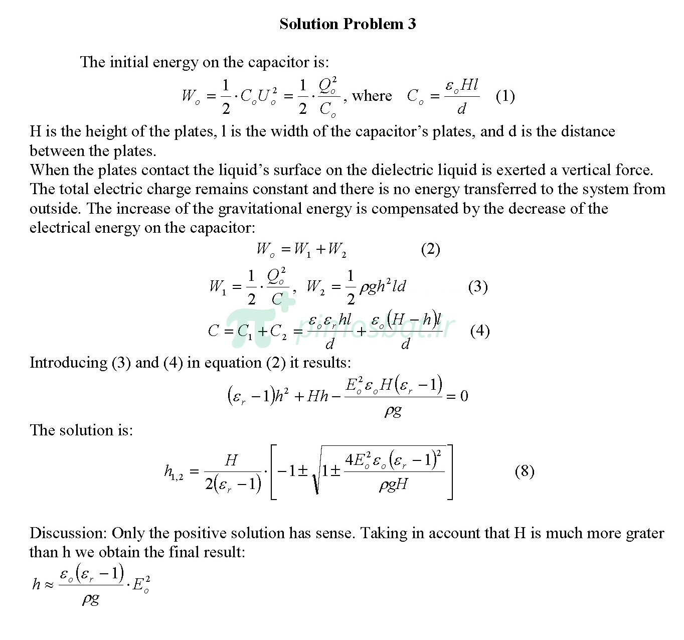 موضوع :   المپیاد فیزیک الکترومغناطیس الکتروستاتیک خازن (الکترو) دی الکتریک قراردادن دی الکتریک بین صفحات خازن انرژی خازن